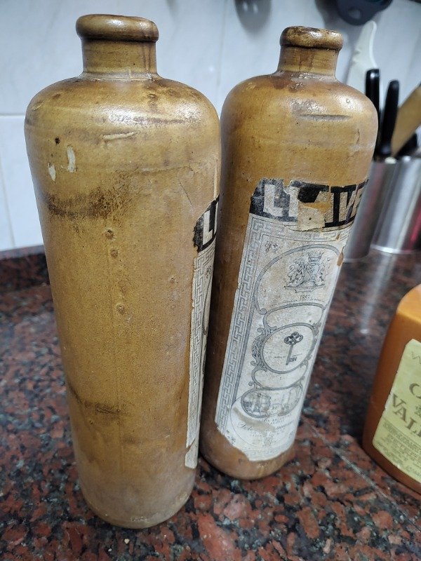 Antigua botella de barro o cerámica para Ginebra LLave