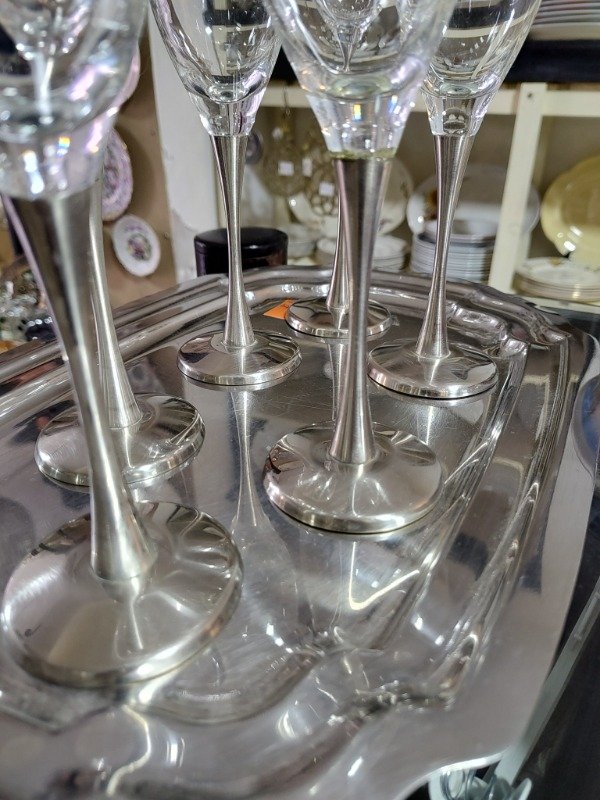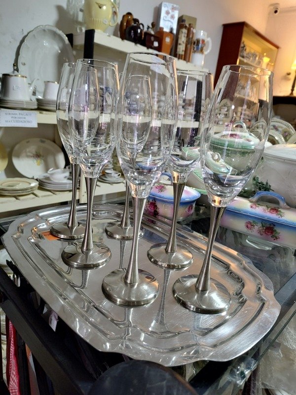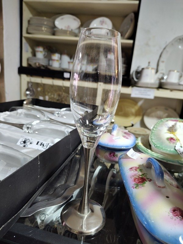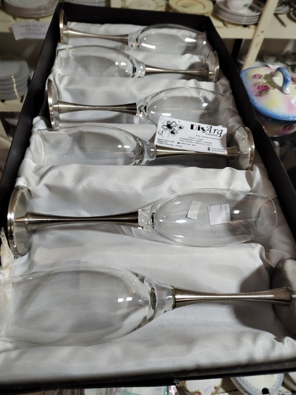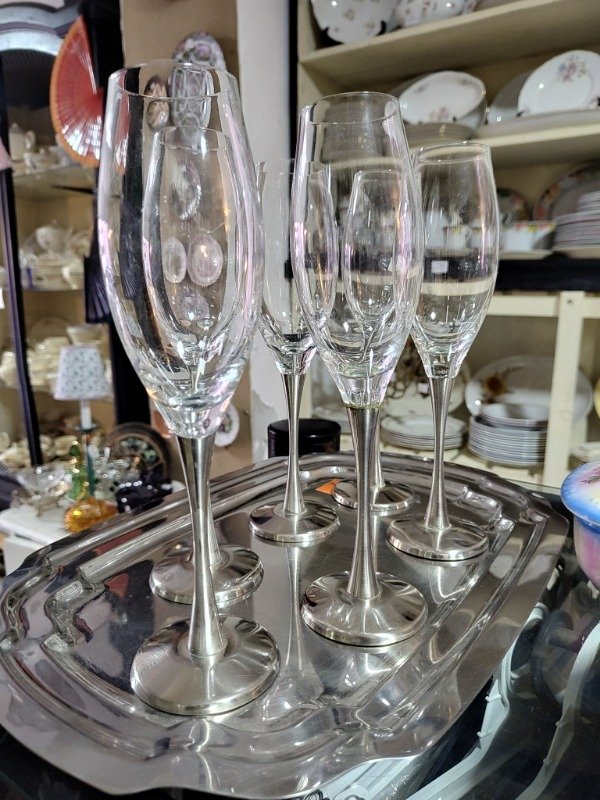 Hermosas y esbeltas copas en cristal liso con pie en metal. 25cm de salto. En caja original.