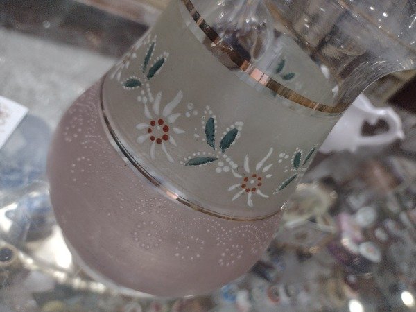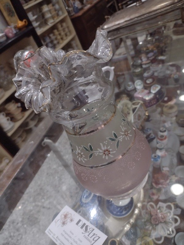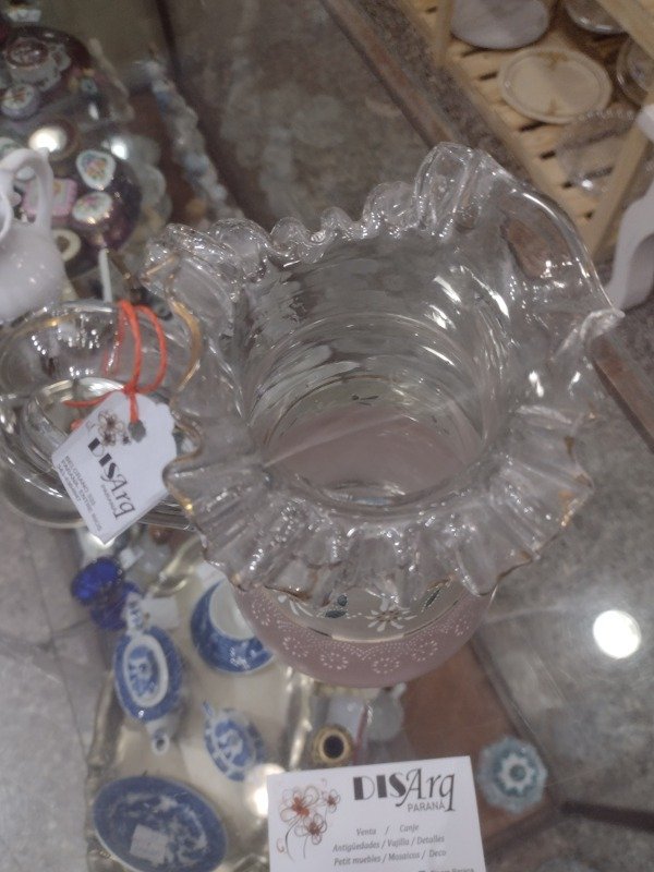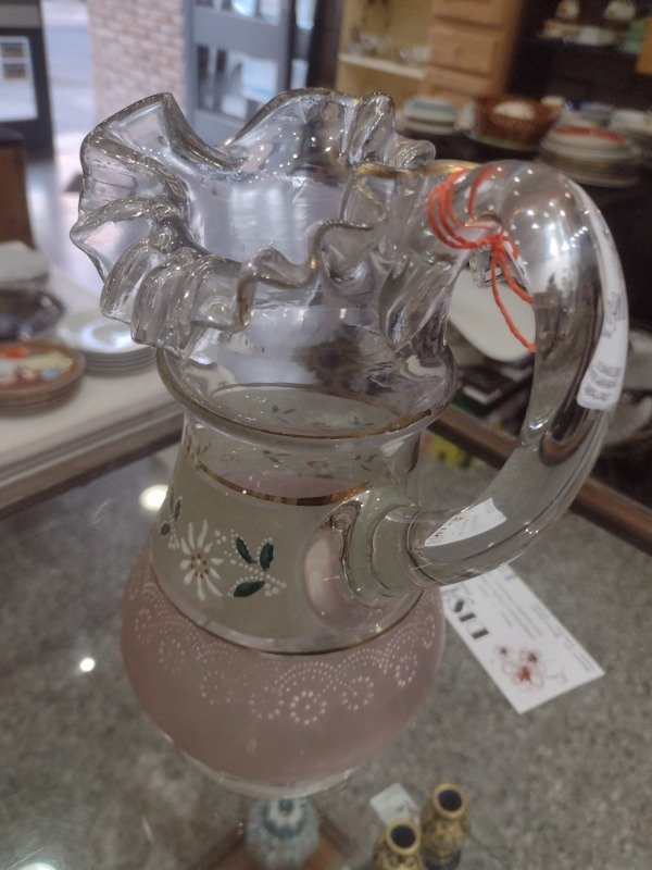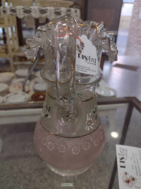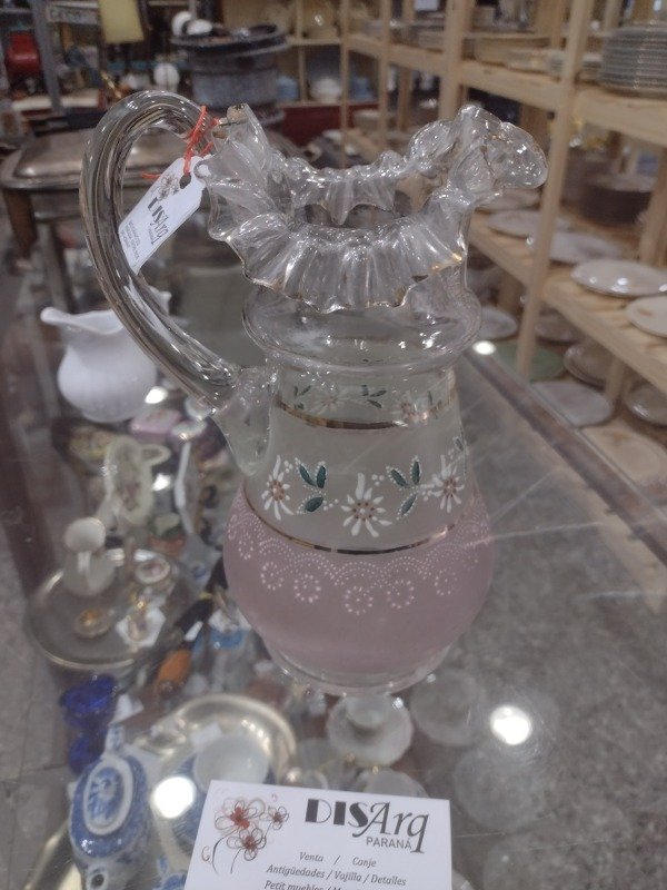 🌸🌸🌸Esta jarra antigua llena de voladitos y detalles en rosa está solo para lucirse!!! Muy buen estado. 22cm de alto. Aprox 1 litro. 🌸🌸🌸