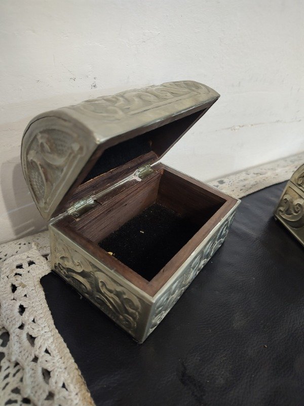 💐cofres en madera y alpaca repujada . Interior forrado. 16x10x10cm . Valor por cada uno