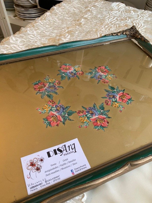💮 Esta bandeja es súper para la ocasión .Tiene todo el glamour de los años '50. Te hace sentir una gloria del cine o algo así.... En vidrio y madera. De 48x33.