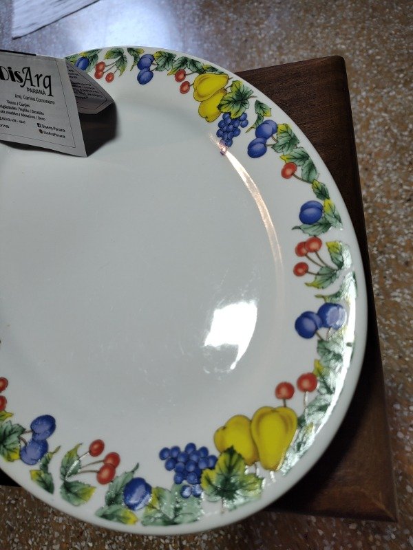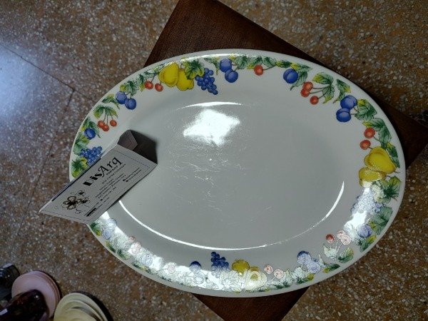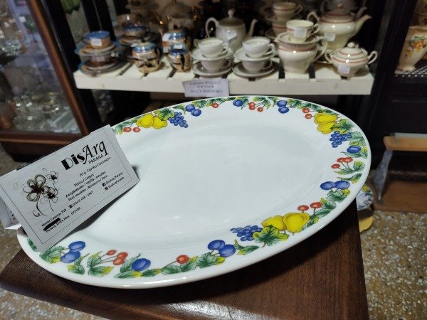 Hermosa fuente en porcelana estampada con frutas. 35x25cm. Excelente estado.