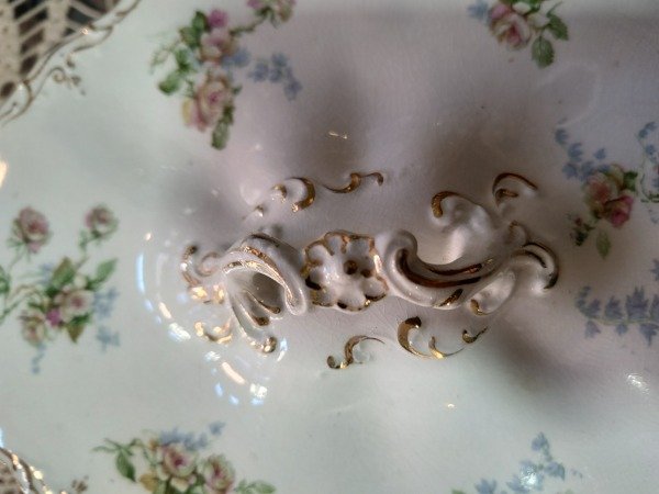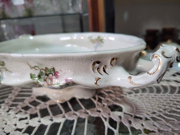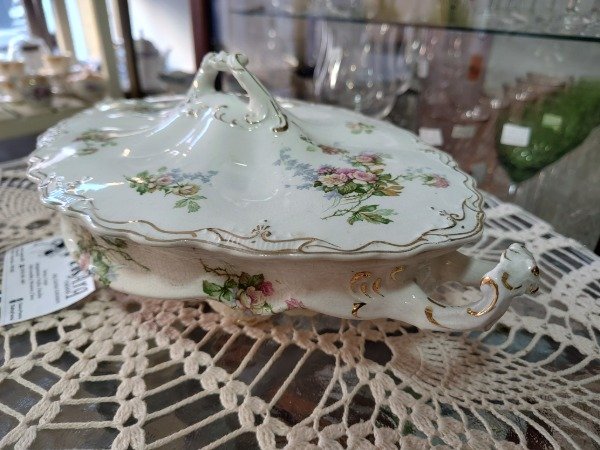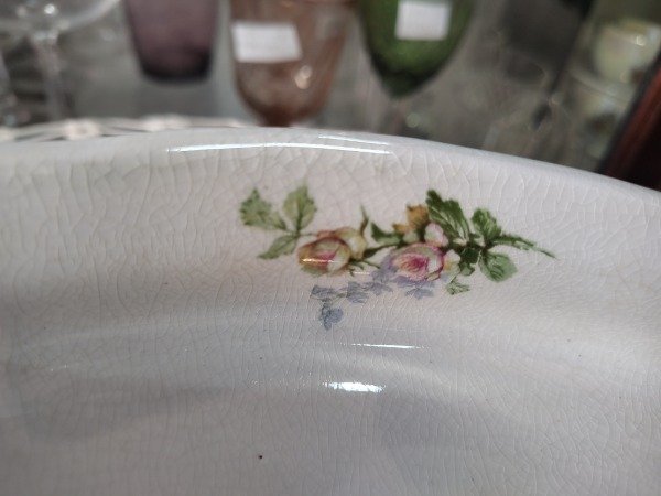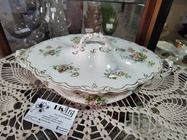 Bellísima pieza de guisera en loza inglesa. Muy delicada. Romántica. Presenta manchitas por su antigüedad. Sin chip ni golpes. Sin contar asas, 28x 20cm.
