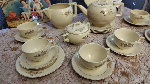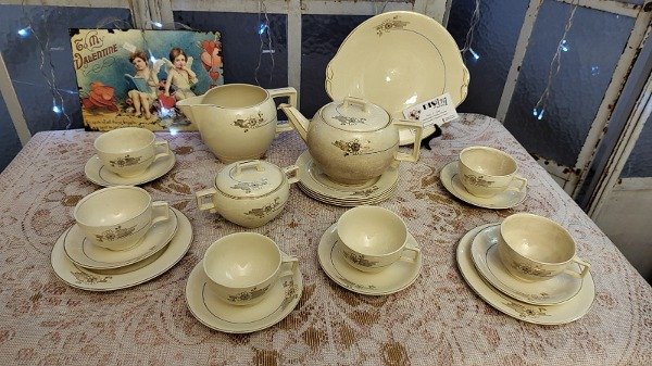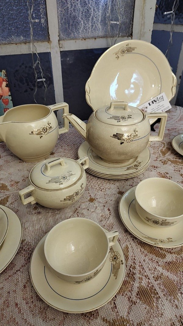 🍁🍁🍁Tardes de invierno para disfrutar deliciosos tés en la mejor vajilla inglesa. Este juego super completo espera lucirse.Sin chips ni roturas. Algunas piezas presentan manchas del tiempo y craquelado. Aún así conservan toda la elegancia y belleza originales. Tetera, azucarera, jarra grande, 6 tazas con sus platos, un masitero con asas y 6 platos de postre o acompañamiento 🍁🍁🍁