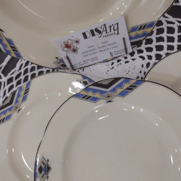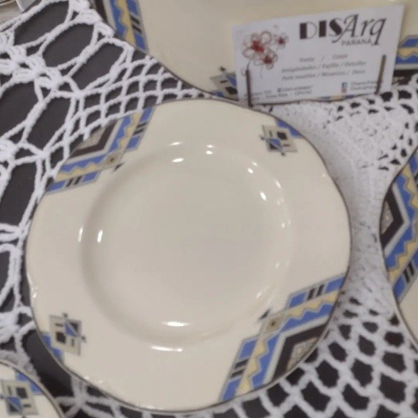 🎩Excelente diseño Art Deco en estos platos de loza inglesa Ivory. Juego de Plato masitero de 25cm y 4 platos de postre de 18cm. Perfecto estado. 🎩