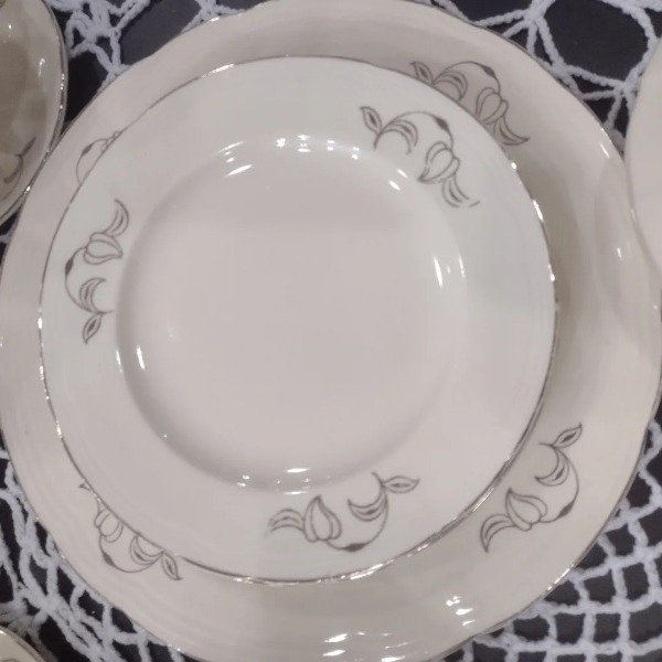 🌸Excelente loza inglesa Alfred Meakin modelo Royal Marigold. Juego de masas compuesto por plato tortero y 6 platos de postre. 🌸
