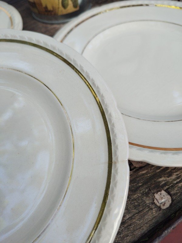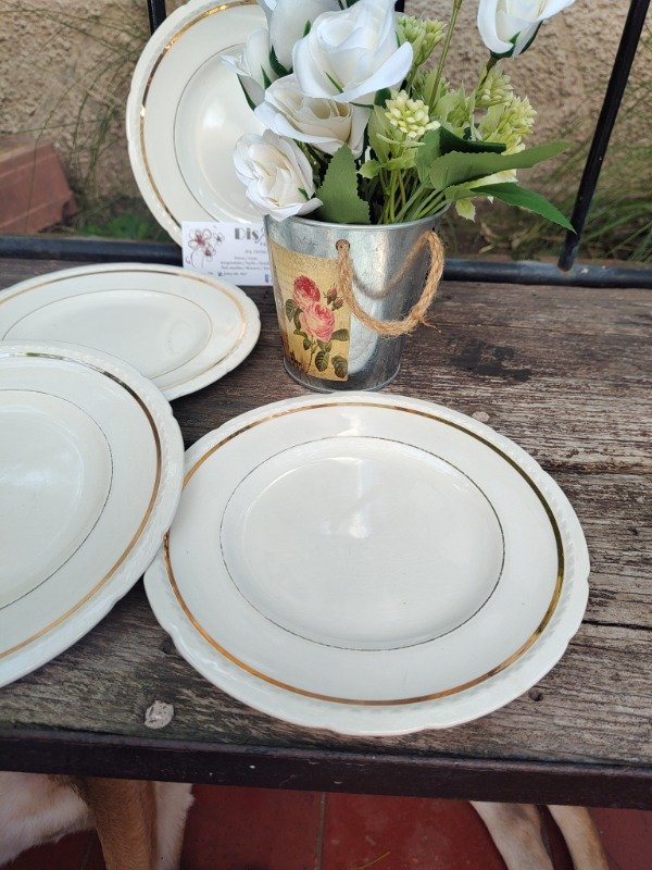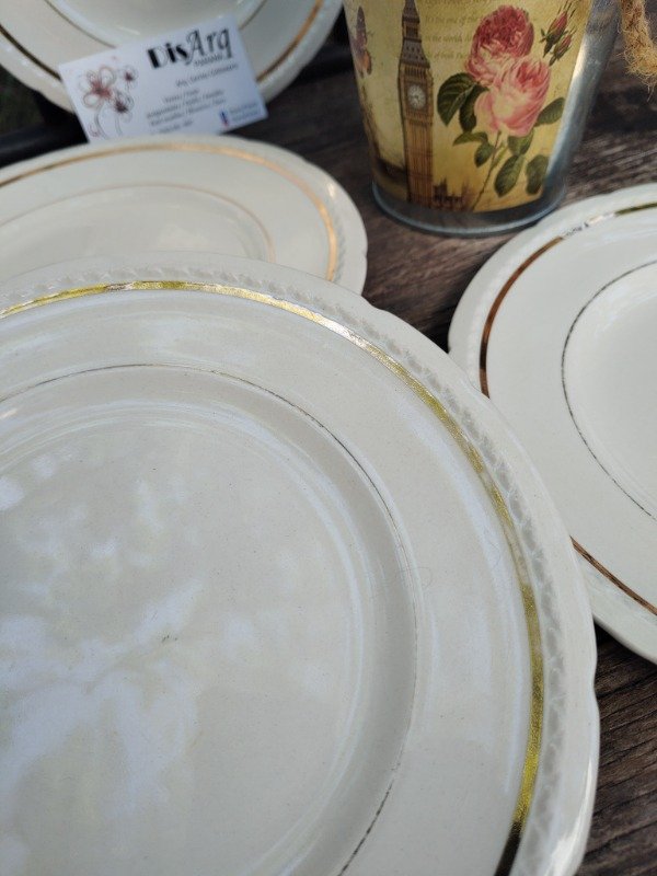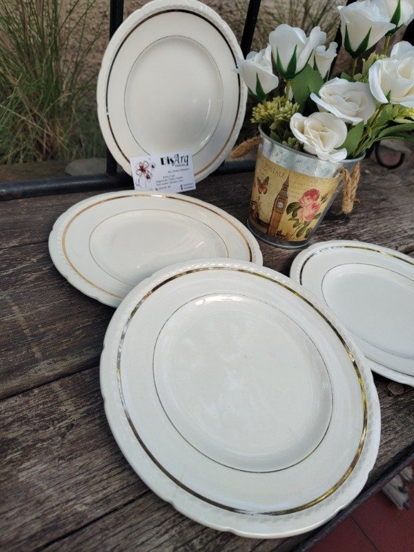 Bellísimos estos platos en loza inglesa . Clásicos y elegantes para cualquier ocasión. 20,5cm de diámetro. Filete oro y borde ondeado. Lote X4. Valor por lote completo.