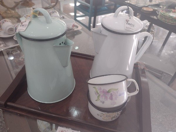 Muy vistosas y decorativas estas cafeteras enlozadas. Totalmente vintage. Para usar y usar... Casi 2 litros.