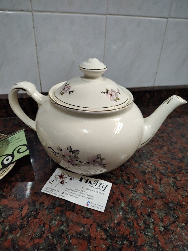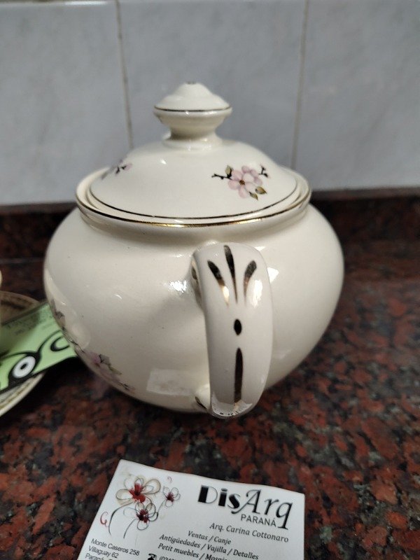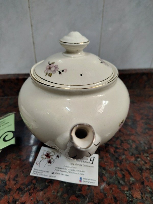Hermosa tetera en loza nacional Lozalit. Con estampa deflor de durazno. Muy buen estado. Sin craquel ni manchas. Para 10/12 tazas de té.