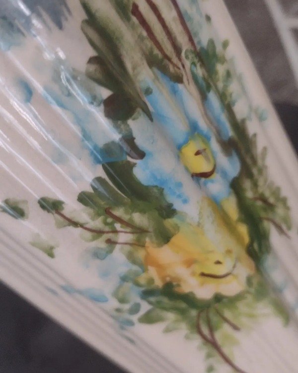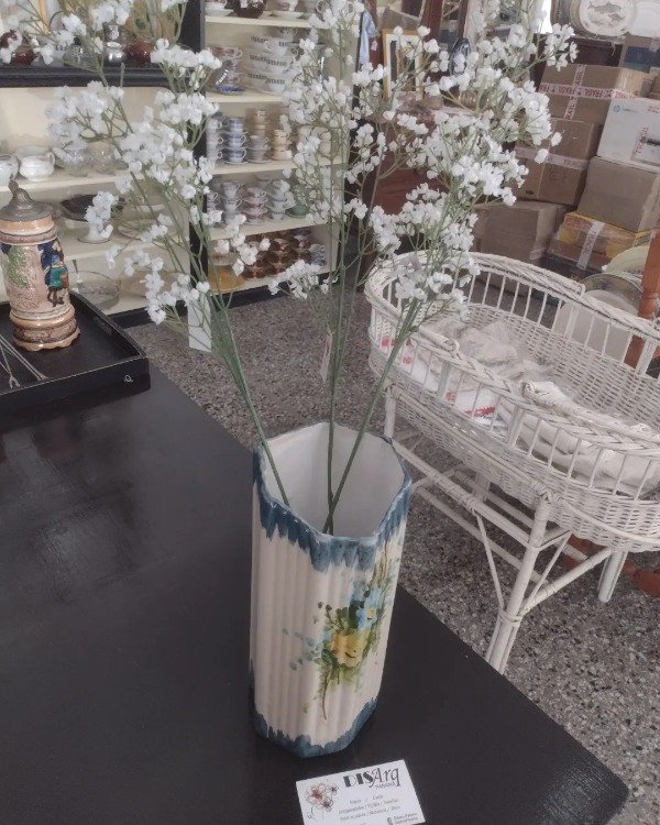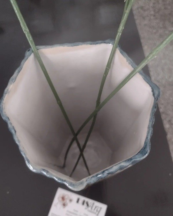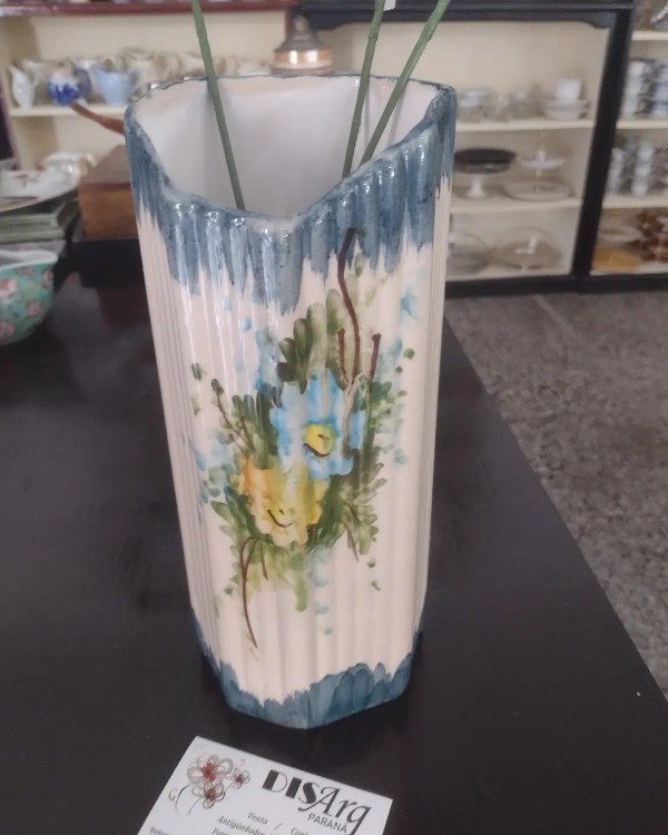 💐💐Hermoso este florera en cerámica esmaltada. De forma hexagonal, 26cm de alto.