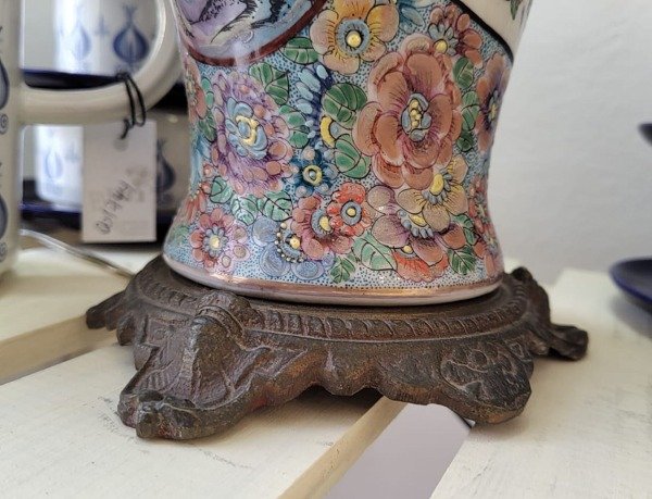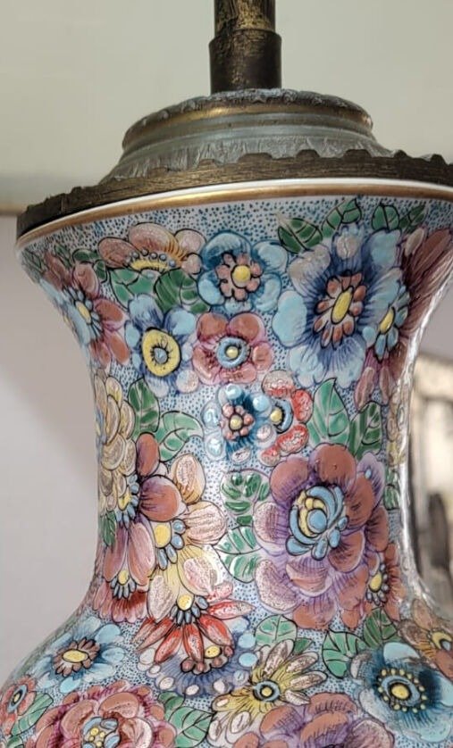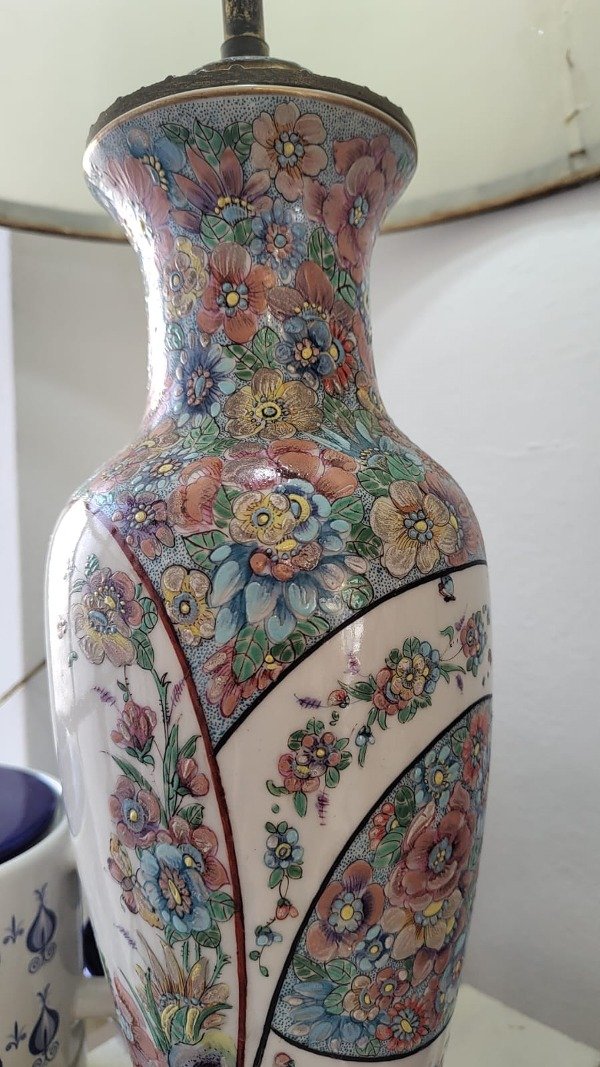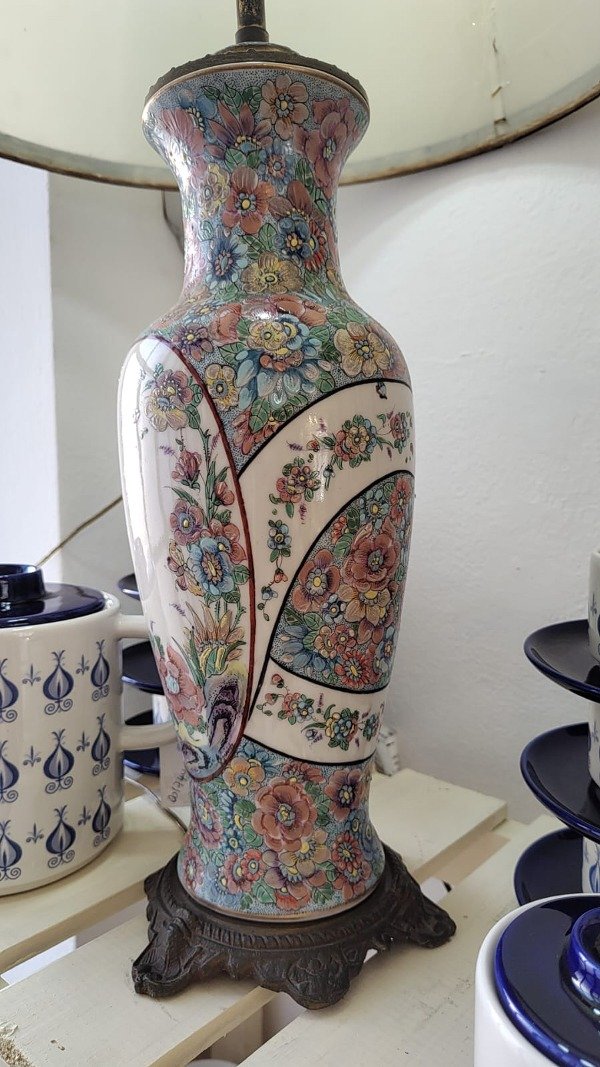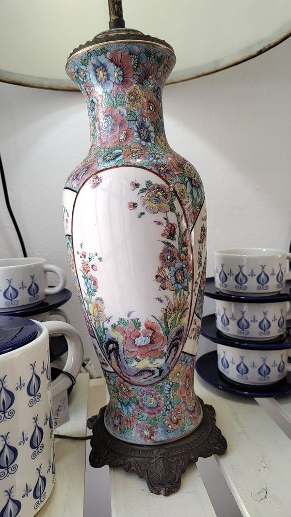 ✨✨✨Bellísima lámpara en porcelana cantonesa con pie de bronce. Muy buen estado. 84cm de alto. La pantalla va de regalo porque debe cambiarse. ✨✨✨