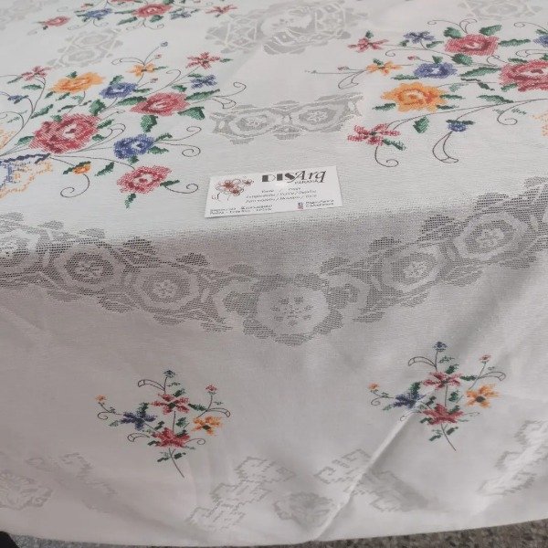 Lindos manteles para vestir estas próximas fiestas!!! -Fibra símil punto cruz. Diam 175cm DisArqParana 💐🌿💐