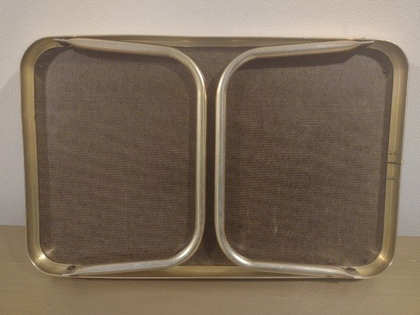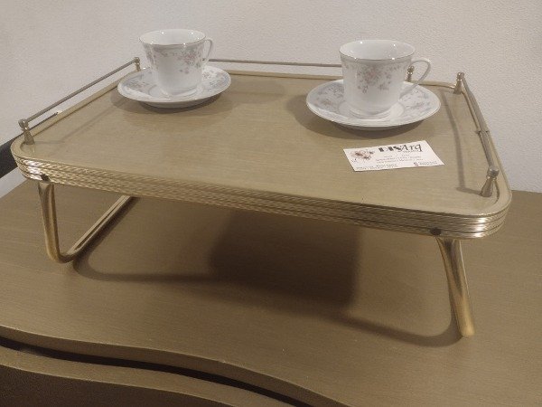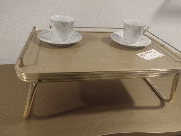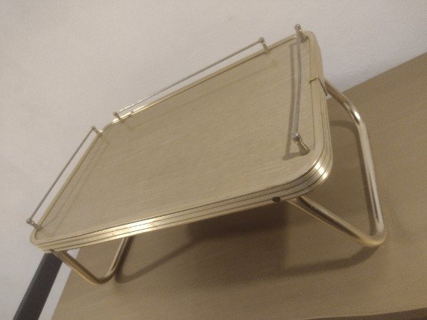 🌿🌿🌿Excelente esta mesita de cama plegable!!! En antiguo aluminio y fenólico. Impecable. 30x50cm aproximadamente. 🌿🌿🌿