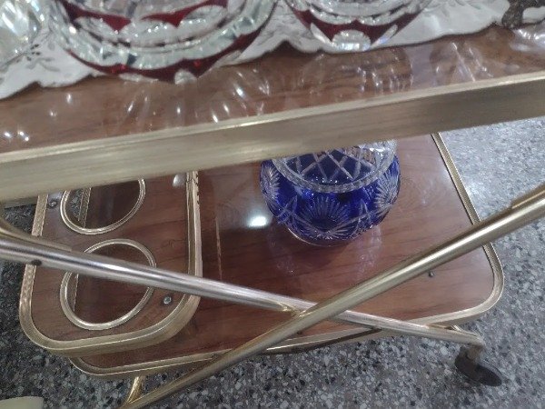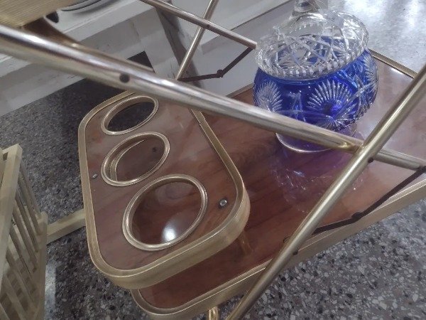 💚🌿Para los de corazón vintage!!! Excelente está mesita wiskera de fórmica y bronce. Impecable estado. 60x40x70. Plegable. Dos niveles. Imperdible!!!. DisArqParana 🌿💚