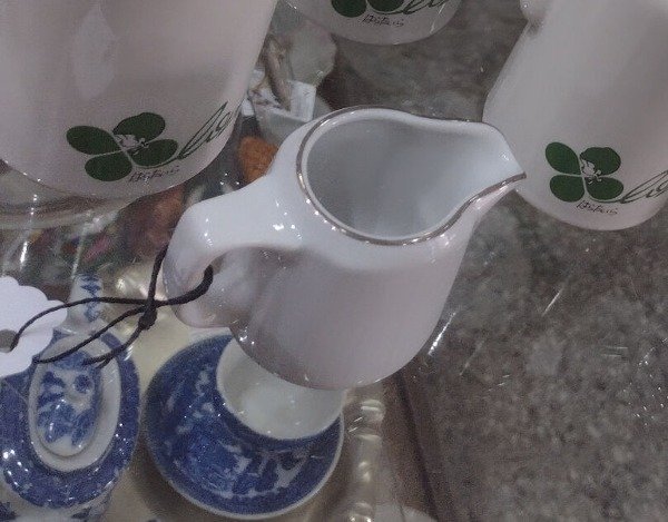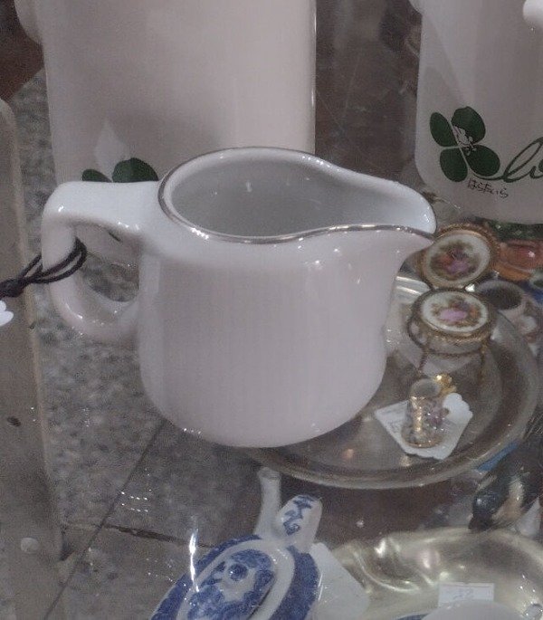 Pequeña jarrita limonera en porcelana blanca con filete plata.